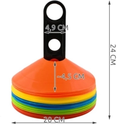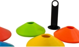 Praktisches Set aus 50 Trainingskegeln in 5 auffälligen Farben für Sporttraining, Schulen und Heim-Workouts. Die Kegel sind flexibel, wetterbeständig und bieten hohe Sichtbarkeit. Dank stapelbarem Halter und Netzbeutel ist Transport und Aufbewahrung maximal einfach.