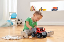 Dank der soliden und langlebigen Verarbeitung aus unbedenklichem Kunststoff hält er intensivem Kinderspiel zu Hause, im Garten und im Sandkasten stand. Der Kipper wird in einer bunten Geschenkbox mit Sichtfenster geliefert und ist damit eine tolle Geschenkidee.