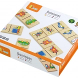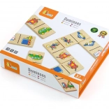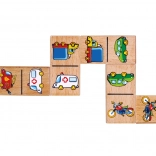 Das Domino besteht aus hochwertigem Holz, was seine Langlebigkeit und Sicherheit beim Spielen garantiert. Jedes Teil hat Abmessungen von etwa 7 x 3,5 x 0,5 cm, was ideal für kleine Hände der Kinder ist.