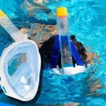 Die Vollgesichtskonstruktion ermöglicht das Atmen durch Mund und Nase und bietet ein verzerrungsfreies Panoramasichtfeld. Ideal für entspanntes Schnorcheln an der Oberfläche.