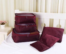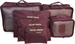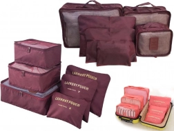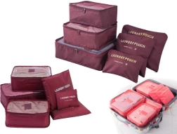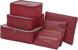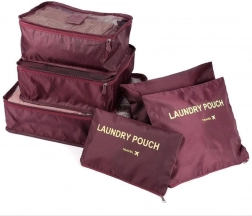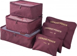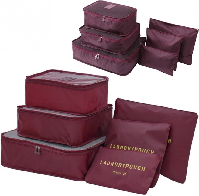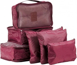 Praktisches Set aus 6 Reise-Organizern für übersichtliches Packen von Kleidung, Unterwäsche, Schuhen und Kosmetik. Drei größere Cubes mit Netzoberseite und zweiseitigem Reißverschluss sorgen für Luftzirkulation und schnellen Zugriff, kleinere undurchsichtige Taschen mit Reißverschluss sind ideal für Schmutzwäsche und Kleinigkeiten. Leicht, robust und einfach zu reinigen, in eleganter Farbe Bordeaux.