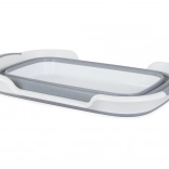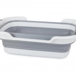 Sparen Sie Platz im Haushalt mit einer kompakten Wanne, die sich im Handumdrehen auf- und zusammenklappen lässt. Die Kombination aus Kunststoff und Silikon sorgt für Robustheit, einfache Reinigung und eine lange Lebensdauer. Im zusammengeklappten Zustand ist die Wanne nur 7,5 cm hoch, sodass Sie sie problemlos im Schrank oder zwischen Geräten verstauen können.