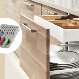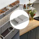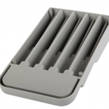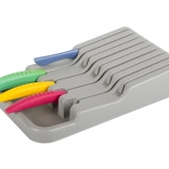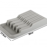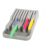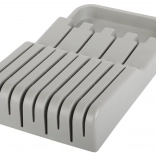 Der Messerorganizer für Schubladen ist eine ausgezeichnete Wahl für jede moderne oder traditionelle Küche. Er ist aus langlebigem Kunststoff in elegantem Grau gefertigt, der eine lange Lebensdauer gewährleistet. Dank der kompakten Abmessungen passt er problemlos in jede Standard-Küchenschublade und optimiert dabei den Platz.