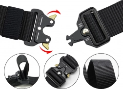 Durable tactical belt with a quick-release metal buckle for safe and comfortable wear. Offers easy size adjustment, high resistance to abrasion and tearing, and a reliable lock to prevent accidental opening. Ideal for the police, security forces, outdoor use, and everyday wear.