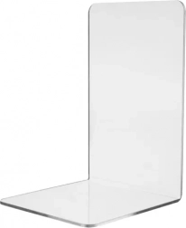 Keep your books and collections neatly in place with practical plexiglass bookends. The set includes 6 pieces made of durable 3 mm acrylic that are transparent and almost invisible, so they won’t disrupt the look of your shelf. Thanks to the stable L-shaped design and carefully smooth edges, they hold books securely without tipping or deformation. Each piece is protected for transport with a protective film.