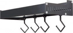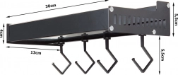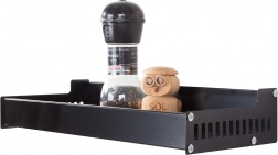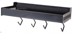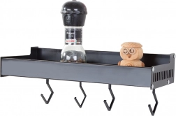 This wall-mounted shelf combines a minimalist look with maximum functionality. Powder-coated aluminum is resistant to moisture and corrosion, making it ideal for kitchens and bathrooms. Removable hooks let you hang towels, ladles, or keys, while the upper tray safely holds spice jars, containers, or cosmetics.