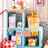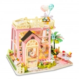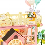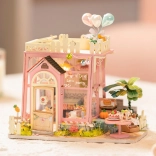 Discover the charm of detailed miniatures with the ROBOTIME Holiday Party Time DIY kit. Build a cute pastel shop with balloons, flowers, and cozy LED lighting. The kit includes everything you need to assemble—glue, paints, brush, and small tools. Ideal for creative relaxation, as an interior decoration, and a lovely gift for ages 14+.