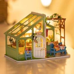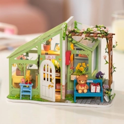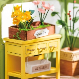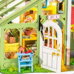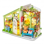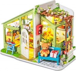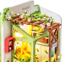 Step into a poetic world of miniatures and create your own flower shop with a bench, mailbox, and colorful blooms. The model stands out with realistic accessories, a wooden structure, and pleasant LED lighting that turns any nook of your home into a charming decoration once finished.