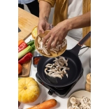 The elegant black design complements modern kitchens, and thanks to the practical hole the pan can be easily hung. Enjoy confidence, speed, and comfort when preparing your favorite meals.