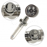 Its elegant silver design perfectly complements any bathroom interior and is easy to clean thanks to a design that can be quickly disassembled and reassembled. The main advantages of this product are water saving, improved water pressure, and the ability to stop the flow instantly without needing to manipulate the faucet.
