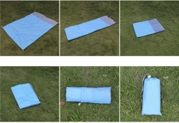 The package includes everything you need: the mat, 4 pegs, and a drawstring pouch. Just unfold and enjoy the comfort.