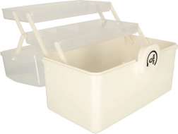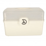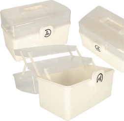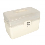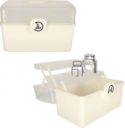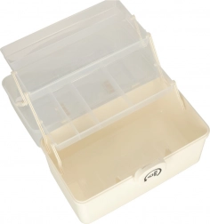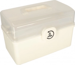 Transparent lid allows you to quickly find everything you need without having to open the organizer. Practical handle allows easy carrying not only at home but also on the road or trips. The interior equipment includes height-adjustable dividers for better organization.