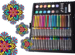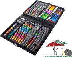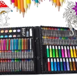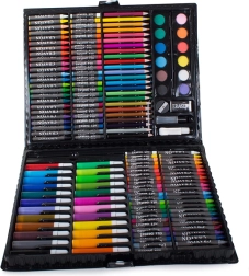From pencils and markers to watercolor paints—168 pieces for drawing, coloring, and painting neatly stored in an organized case.
