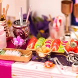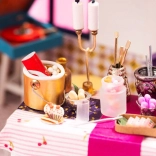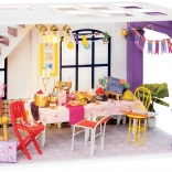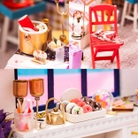 The miniature includes detailed elements like colorful chairs, tables, and other decorations that faithfully mimic real environments.