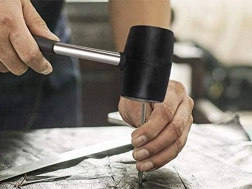 The rubberized, non-slip handle on a metal shank provides stability, comfort, and more precise strike guidance.