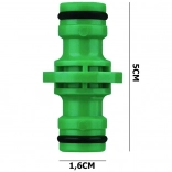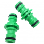 This universal quick coupler is designed for fast connection of two garden hoses without tools. The green body with a textured surface provides a secure grip, while quality O-rings ensure a tight, leak-proof joint.