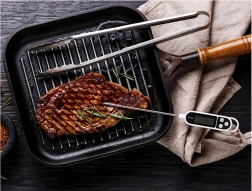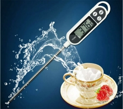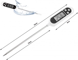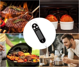 Enjoy easy temperature measurement with this powerful digital kitchen thermometer with probe. It is designed for precise monitoring of temperature in meat, water, cakes while baking, and grilling. Thanks to the readable LCD display, you will always have a clear overview of the current temperature of the dish, selectable in Celsius or Fahrenheit.
