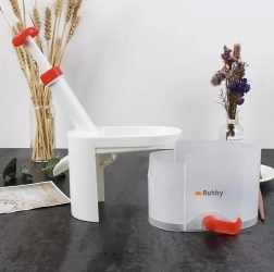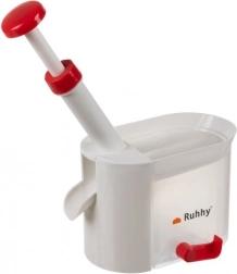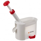 Removed pits fall into a special reservoir that can be easily emptied after each use. The fruit automatically slides into a prepared container. This convenient and efficient device will be appreciated by beginners and experienced preservers alike.