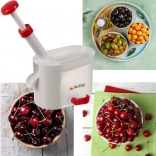 The pitter is fast and precise, letting you prepare large quantities of cherries in much less time. It removes pits without crushing the fruit, making it ideal for whole-fruit jam preparation. The bottom features a silicone suction base that ensures stability while working on a countertop.