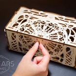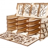 Turn organizing your card collection into a fun experience. The UGEARS wooden case combines functional design, mechanical elegance, and craftsmanship. With a simple twist of the lock, the case opens and smoothly unfolds into a clear “staircase,” allowing you to quickly find and sort cards.