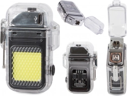 A practical plasma lighter with an integrated flashlight combines a windproof flameless plasma coil, a bright COB LED with 3 lighting modes, and USB charging with an LED battery status indicator. Thanks to its water-resistant sealed construction, it is ideal for camping, trips, and everyday use, and it also comes in an elegant gift box.