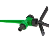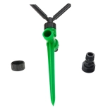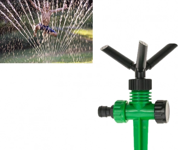 The rotating head with three arms distributes water evenly across the entire lawn and beds. Ideal for regular irrigation without dry spots.