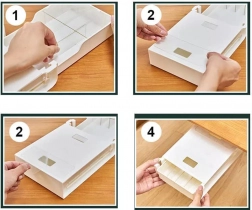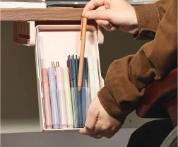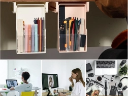 This storage box is designed to help you keep order in your office or home workspace. You can easily install it under any desk with the firm double-sided adhesive tape, without needing any special tools or professional help. With four compartments, you can efficiently organize all your office needs.