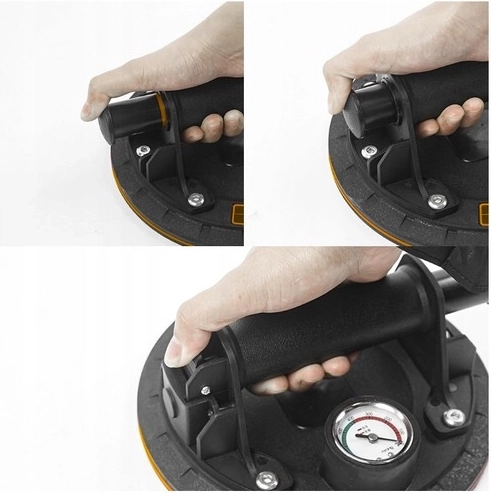 The suction cup ensures safe grip and handling of objects weighing up to 200 kg, ideal for use on smooth and flat surfaces such as glass or metal.