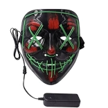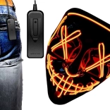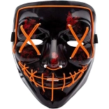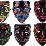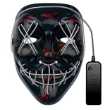 A stylish light-up LED mask in The Purge style that lights up every Halloween, party, and cosplay. It offers 3 lighting modes, comfortable wear with foam padding, and is powered by 2× AA.