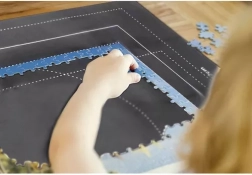 A key feature of this mat is the printed pattern with six different sizes, simplifying the assembly process. Additionally, you get four separate puzzle pockets with snap closures for efficient piece sorting.