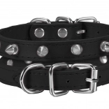 Give your pet a bold look while keeping comfort in mind. This high-quality eco-leather collar with a refined design combines fashion-forward style and functionality. The conical studs create a striking effect and, together with the sturdy buckle, ensure safe leash control.