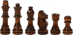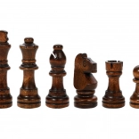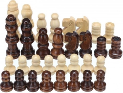 A complete set of chess pieces in natural and dark brown. Perfect for strategy training and family tournaments.