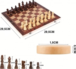 This versatile set offers three classic board games in one: chess for strategic thinking, checkers with simple rules, and backgammon for a dynamic, exciting experience. The folding wooden chessboard also serves as a box for safe storage of pieces and tokens.