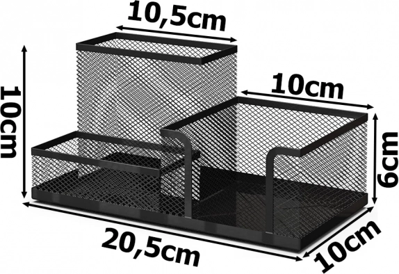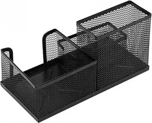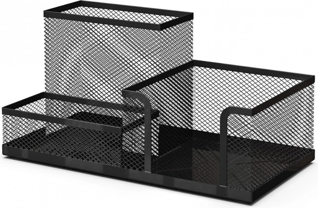 Discover the benefits of organization with our black mesh desk organizer. Its lightweight metal construction is designed to keep your workspace clean and efficient. Three spacious compartments help organize all types of office essentials, allowing you to focus fully on work and increase productivity.