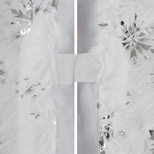 This skirt is adorned with beautiful silver stars and snowflakes that give a unique magical appearance to your Christmas decor.
