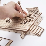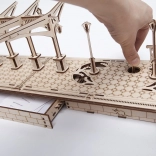 The mechanical 3D puzzle by UGEARS combines traditional material and smart mechanics. Once assembled, you get a detailed model of a train platform with stairs, a bench, a clock, and railings. Thanks to precise cutting, the parts fit perfectly and the model moves smoothly.