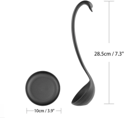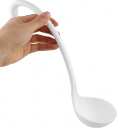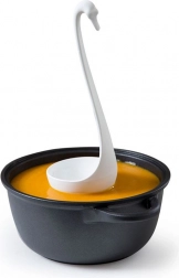 Bring originality and elegance to your kitchen. The floating swan-shaped ladle stands out with its long, ergonomically curved handle and deep bowl for easy scooping. Thanks to its clever construction, it stays vertical both on the stand and directly in the pot, so you won't mess up the countertop or table.