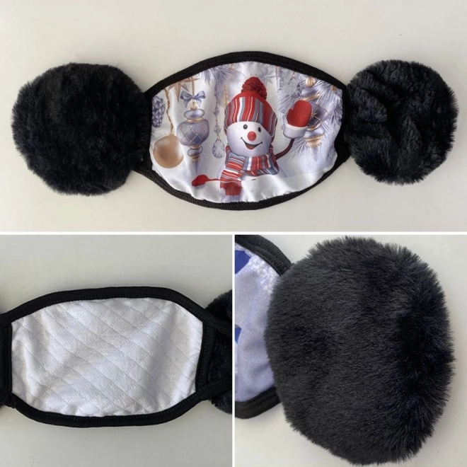 Christmas mask with ears resembling a snowman