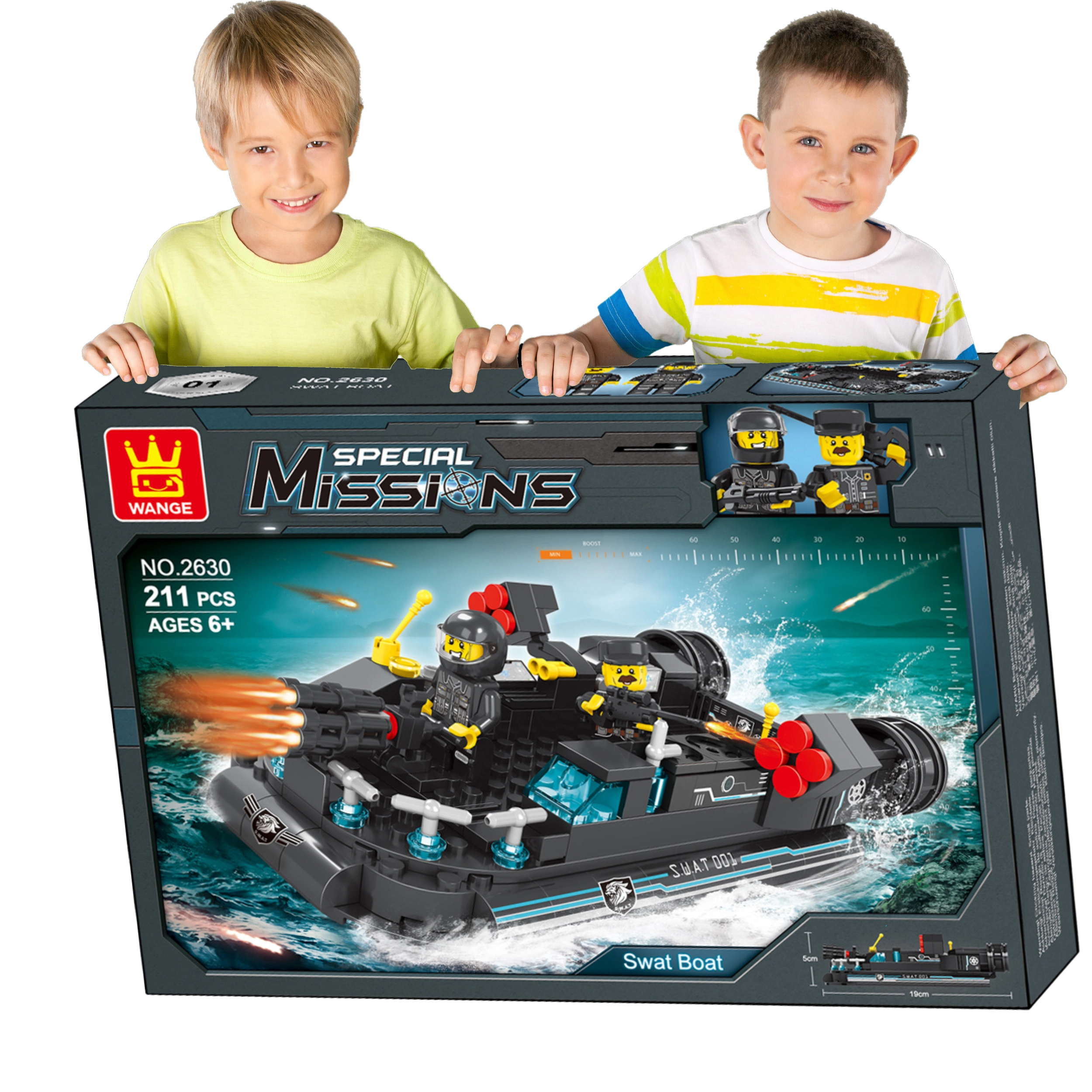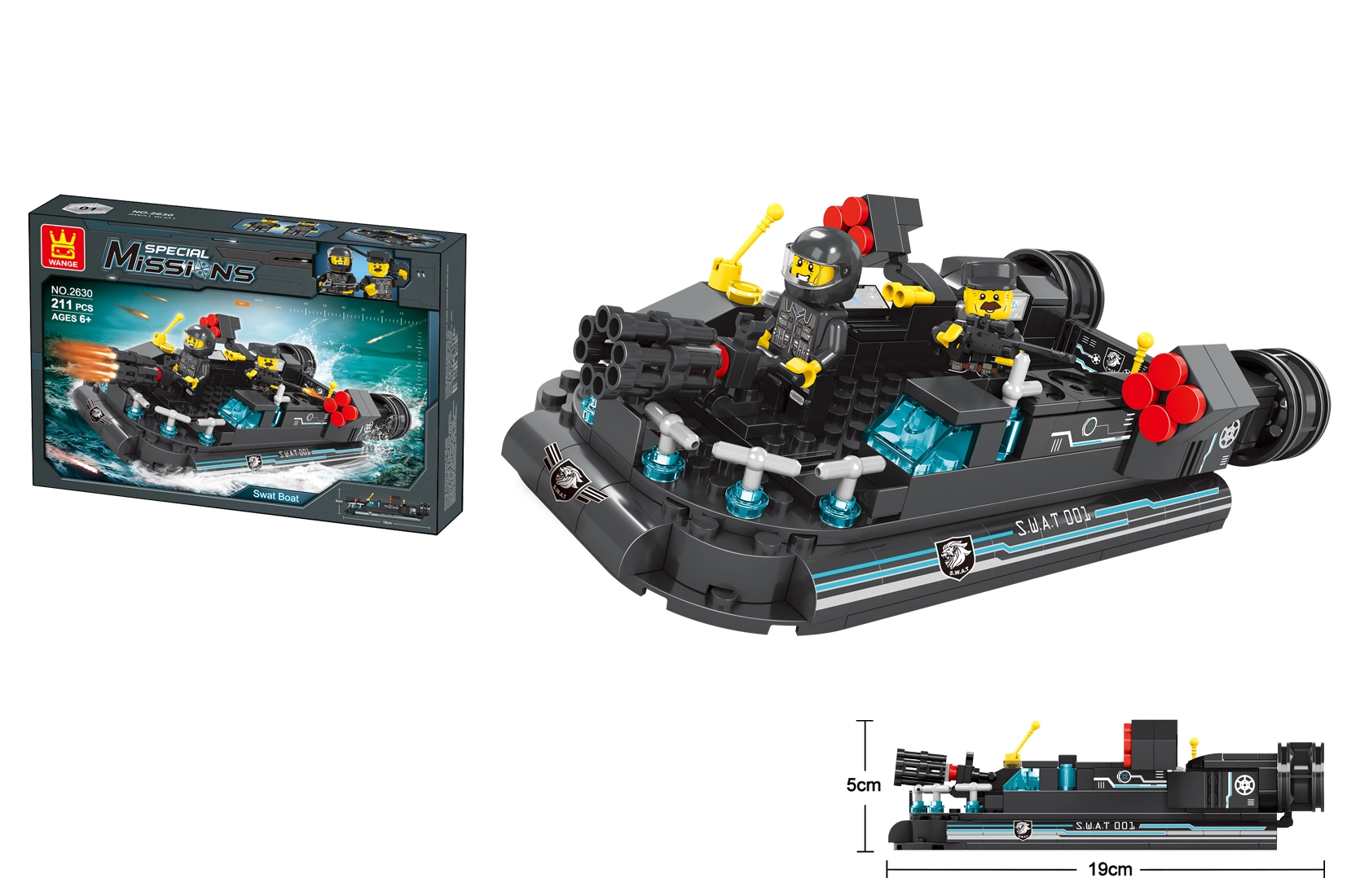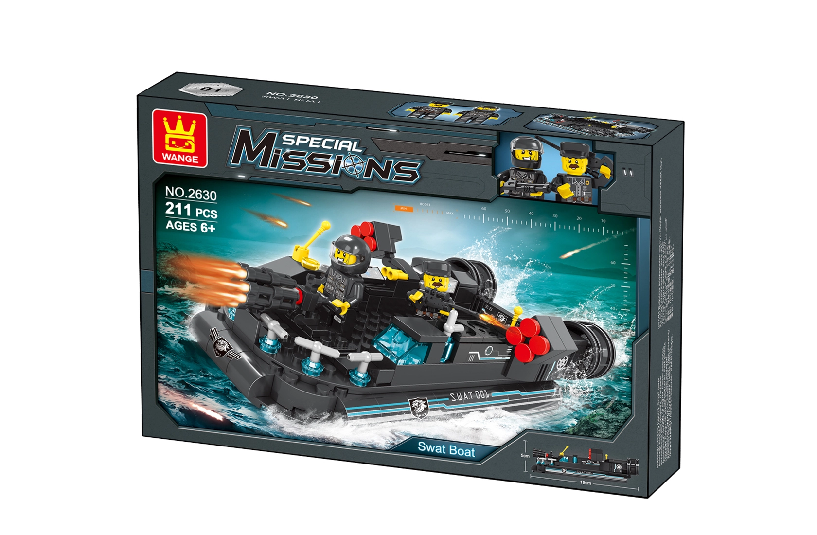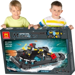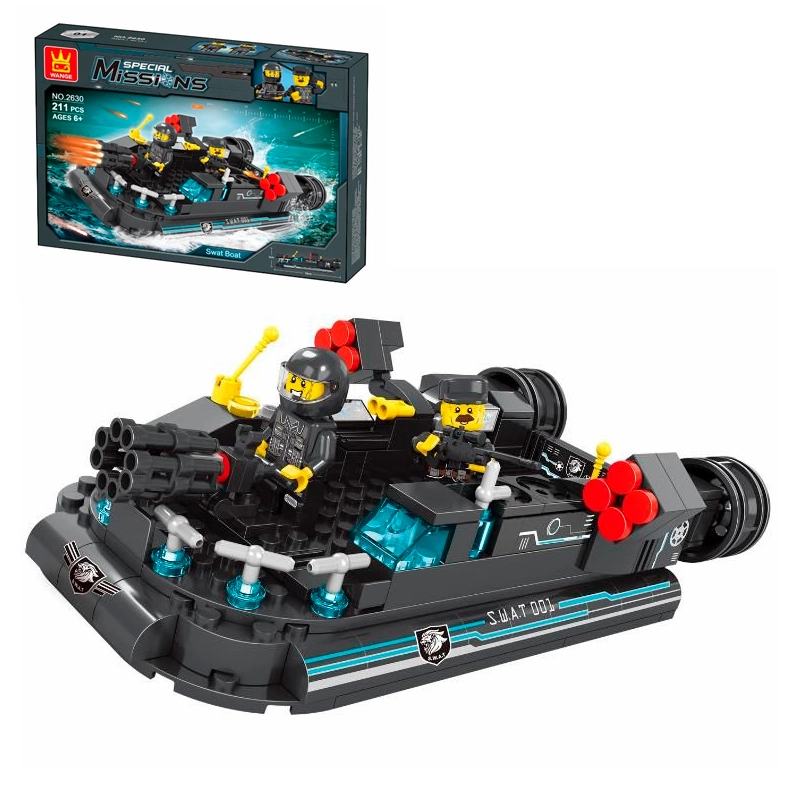 - 211 pieces for a detailed police boat model