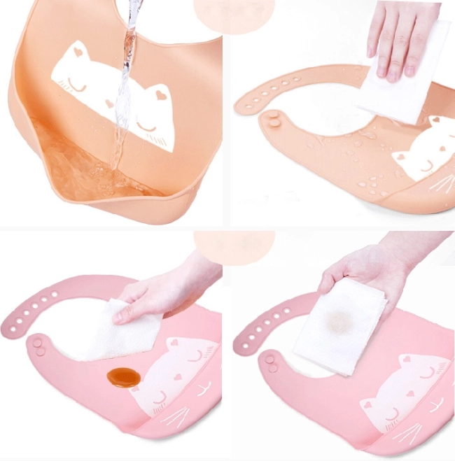 The silicone bib effectively protects children's clothing from getting dirty during meals while ensuring comfort. It features a deep pocket that catches food remnants and prevents them from falling onto the child's shirt. After meals, simply rinse the bib in warm soapy water. The charming bib is made from soft and pleasant material, gentle on the child's delicate skin.