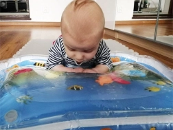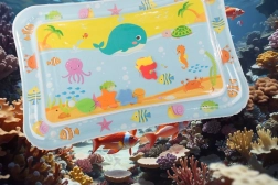 The inflatable sensory water mat is designed to stimulate your child's senses through various textures, colors, and shapes. Children can play with the moving shapes inside the mat, which helps develop hand-eye coordination.