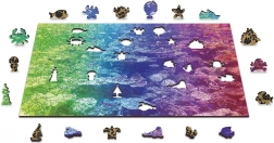The wooden puzzle Coral Reef 2-in-1 delivers a unique assembling experience – on one side you assemble by the colorful motif, on the other by shapes with a repeating pattern. Some pieces have original shapes of animals, objects, or buildings, and thanks to laser-highlighted details they feel like small standalone figurines.