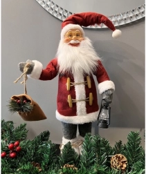This richly decorated Saint Nicholas Christmas ornament catches the eye at first glance. A red coat with white fur trim, a long white beard, and gold glasses create the classic look that belongs to Christmas. Saint Nicholas carries a lantern and has a sack full of gifts on his back, instantly setting a festive mood.