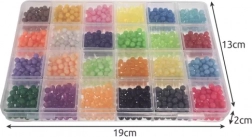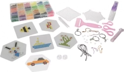 This creative water bead kit provides hours of fun for kids and parents. The box includes 2800 beads in 24 vibrant colors, two templates (square and hexagon), 8 pattern cards, and practical tools including a spray bottle. Once your design is placed on a template, simply lightly spray with water and after drying it holds together – no ironing needed.