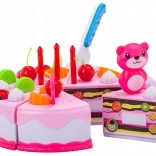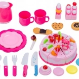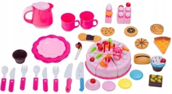 The extensive 80-piece birthday cake set for little pastry chefs brings hours of fun and learning. The pieces are connected by hook-and-loop fasteners, so kids can slice the cake with the knife and reassemble it. Includes a light-up candle, plates and cutlery, and a coffee set with cups. This interactive toy develops fine motor skills, imagination, and creativity as kids independently decorate the cake with fruit, candles, and cute accessories.
