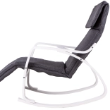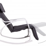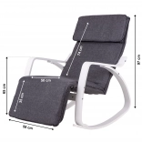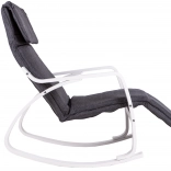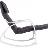 The ModernHome rocking chair is designed for maximum comfort and tranquility. Its sturdy metal construction in a white finish is complemented by gray textile upholstery offering cozy seating. Thanks to the five-step footrest adjustment, you can easily set the ideal position.