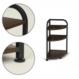 The frame is made of metal with a matte black powder finish, resistant to scratches. The shape fits perfectly into corner spaces.