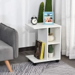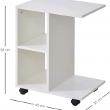 Thanks to the four functional shelves, there's space for books, magazines, or small flower pots. The surface made of particle board with melamine foil resists scratches and stains. Wheels make it easy to move, even when the table is loaded.