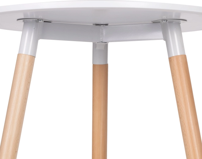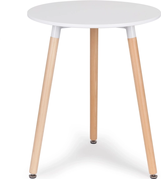 A compact round table in a clean Scandinavian style with a 60 cm diameter fits living rooms, dining areas, and offices. It combines a matte white top, beech legs, and a metal frame for high stability. Thanks to the adjustable feet, the table is floor-safe and easy to level on uneven surfaces. Its universal design pairs perfectly with both modern and classic interiors.