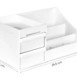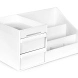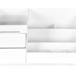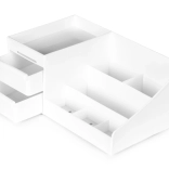 The practical ModernHome organizer combines storage space for cosmetics, jewelry, and office supplies. It offers two drawers, many compartments and special slots for small items, features a simple and elegant white design, and helps keep perfect order on your desk, in the bathroom, or bedroom.